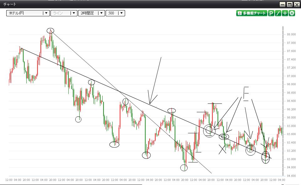 下の○印は損切の場所。
