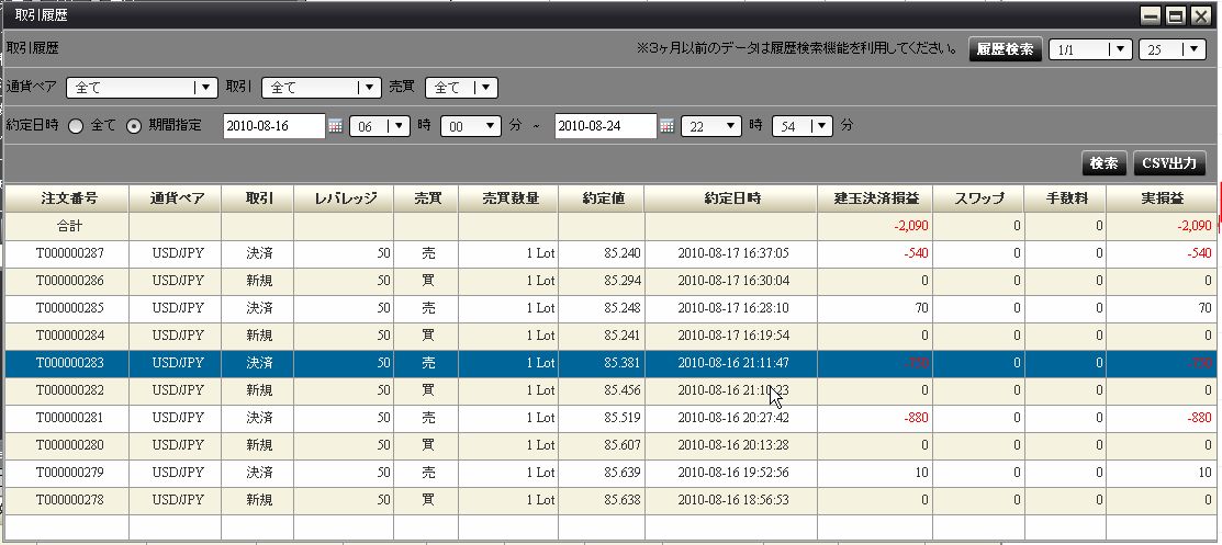 16日からの取引の検証